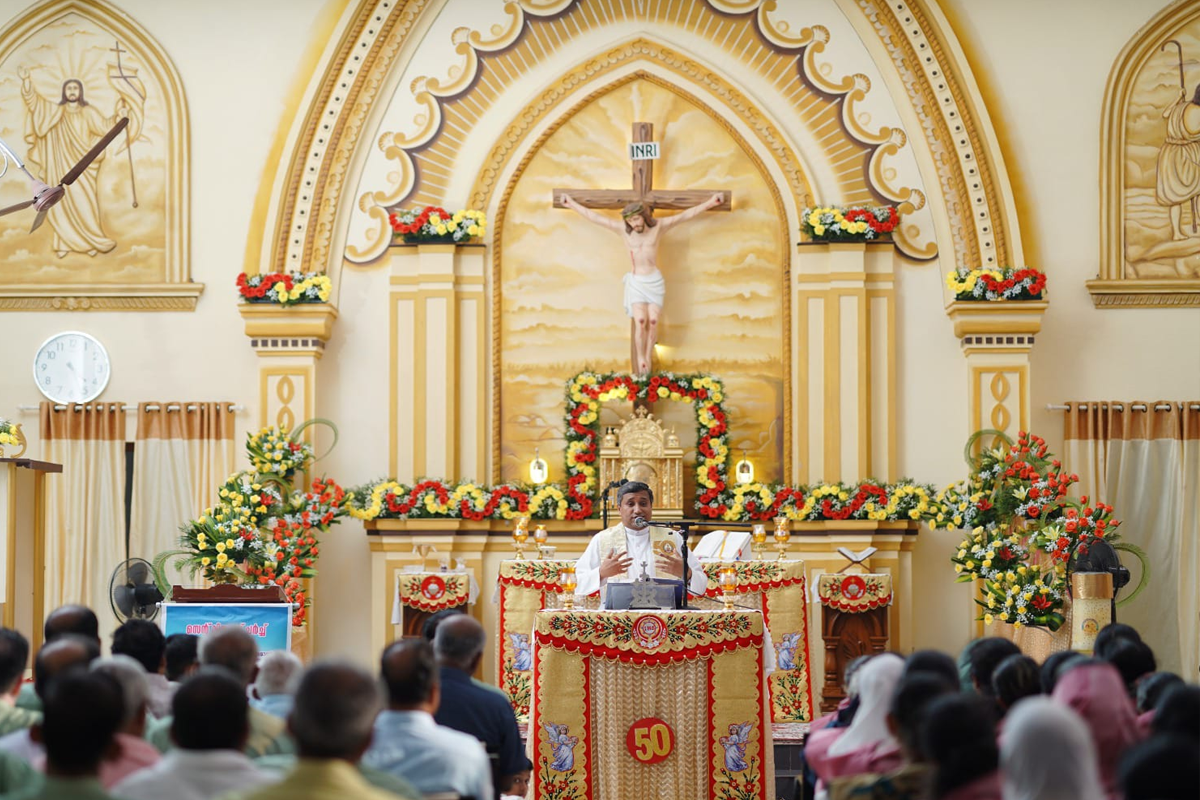 Reverend Sebastian Irimbachan offered the first Holy Communion in this shed on April 29, 1973. When this shed called St. George Prayer Center was destroyed by the wind, later we offered the Holy Mass at the house of Sree Cheripadath Appachan in Ponpara . In the early part of 1973, some of the settlers approached Sree Kapungal Sai Thalavi Haji, a prominent citizen of Edathanattukara, and he donated 10 cents of land in Ponpara for the construction of a church.