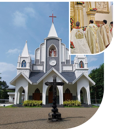 Edathanattukara is a small village surrounded by hills and streams on the border of Palakkad and Malappuram districts. Migration to Edathanattukara started in the 1970s. Reverend Thomas Manjuvally came to Edathanattukara from Pariyapuram to meet the needs of the migrants and on his advice Reverend Sebastian Irimbachan from Kanjirapuzha Church, which was part of the Thalassery diocese, came here. A temporary thatched shed was built in the name of St. George at Odakulam, about a kilometer away from the present church.